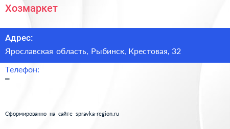 Хозмаркет по адресу Ярославская область, Рыбинск, Крестовая, 32 в дальнейшем Организация, размещена в следующих категориях: