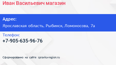 Иван Васильевич, магазин по адресу Ярославская область, Рыбинск, Ломоносова, 7а в дальнейшем Организация, размещена в следующих категориях: