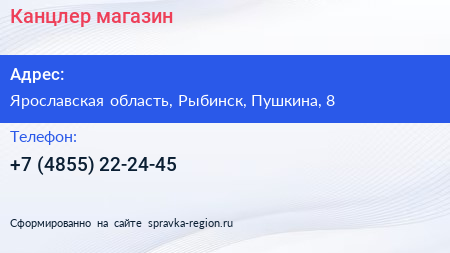 Канцлер, магазин по адресу Ярославская область, Рыбинск, Пушкина, 8 в дальнейшем Организация, размещена в следующих категориях:
