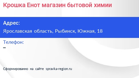 Крошка Енот, магазин бытовой химии по адресу Ярославская область, Рыбинск, Южная, 18 в дальнейшем Организация, размещена в следующих категориях:
