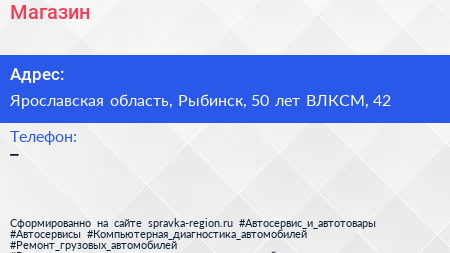 Магазин по адресу Ярославская область, Рыбинск, 50 лет ВЛКСМ, 42 в дальнейшем Организация, размещена в следующих категориях: