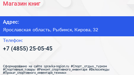 Магазин книг по адресу Ярославская область, Рыбинск, Кирова, 32 в дальнейшем Организация, размещена в следующих категориях: