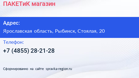 ПАКЕТиК, магазин по адресу Ярославская область, Рыбинск, Стоялая, 20 в дальнейшем Организация, размещена в следующих категориях: