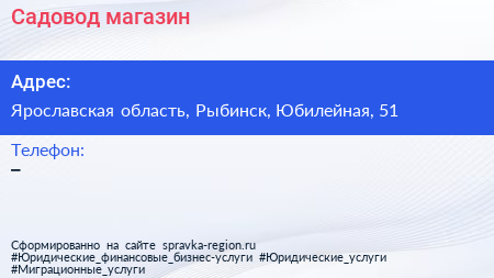 Садовод, магазин по адресу Ярославская область, Рыбинск, Юбилейная, 51 в дальнейшем Организация, размещена в следующих категориях: