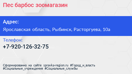 Пес барбос, зоомагазин по адресу Ярославская область, Рыбинск, Расторгуева, 10а в дальнейшем Организация, размещена в следующих категориях: