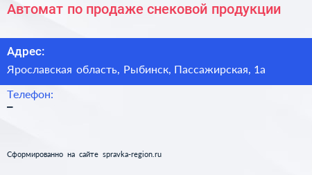 Автомат по продаже снековой продукции по адресу Ярославская область, Рыбинск, Пассажирская, 1а в дальнейшем Организация, размещена в следующих категориях: