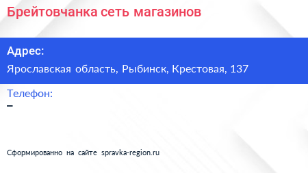 Брейтовчанка, сеть магазинов по адресу Ярославская область, Рыбинск, Крестовая, 137 в дальнейшем Организация, размещена в следующих категориях: