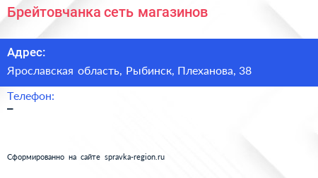 Брейтовчанка, сеть магазинов по адресу Ярославская область, Рыбинск, Плеханова, 38 в дальнейшем Организация, размещена в следующих категориях: