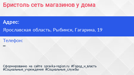 Бристоль, сеть магазинов у дома по адресу Ярославская область, Рыбинск, Гагарина, 19 в дальнейшем Организация, размещена в следующих категориях: