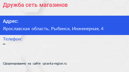 Дружба, сеть магазинов по адресу Ярославская область, Рыбинск, Инженерная, 4 в дальнейшем Организация, размещена в следующих категориях: