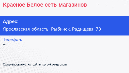 Красное & Белое, сеть магазинов по адресу Ярославская область, Рыбинск, Радищева, 73 в дальнейшем Организация, размещена в следующих категориях: