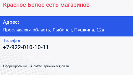 Красное & Белое, сеть магазинов по адресу Ярославская область, Рыбинск, Пушкина, 12а в дальнейшем Организация, размещена в следующих категориях: