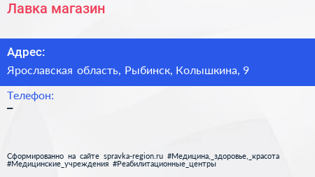 Лавка, магазин по адресу Ярославская область, Рыбинск, Колышкина, 9 в дальнейшем Организация, размещена в следующих категориях: