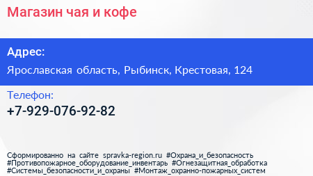 Магазин чая и кофе по адресу Ярославская область, Рыбинск, Крестовая, 124 в дальнейшем Организация, размещена в следующих категориях: