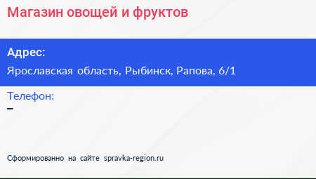 Магазин овощей и фруктов по адресу Ярославская область, Рыбинск, Рапова, 6/1 в дальнейшем Организация, размещена в следующих категориях: