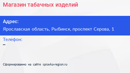 Магазин табачных изделий по адресу Ярославская область, Рыбинск, проспект Серова, 1 в дальнейшем Организация, размещена в следующих категориях: