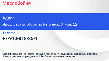 Маслобойня по адресу Ярославская область, Рыбинск, 9 мая, 12 в дальнейшем Организация, размещена в следующих категориях: