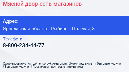 Мясной двор, сеть магазинов по адресу Ярославская область, Рыбинск, Полевая, 3 в дальнейшем Организация, размещена в следующих категориях: