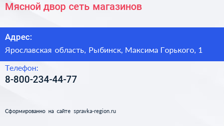 Мясной двор, сеть магазинов по адресу Ярославская область, Рыбинск, Максима Горького, 1 в дальнейшем Организация, размещена в следующих категориях: