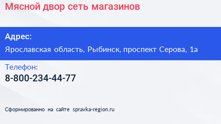 Мясной двор, сеть магазинов по адресу Ярославская область, Рыбинск, проспект Серова, 1а в дальнейшем Организация, размещена в следующих категориях: