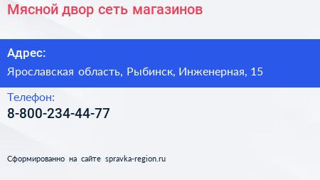 Мясной двор, сеть магазинов по адресу Ярославская область, Рыбинск, Инженерная, 15 в дальнейшем Организация, размещена в следующих категориях: