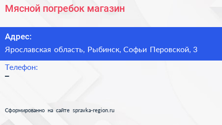 Мясной погребок, магазин по адресу Ярославская область, Рыбинск, Софьи Перовской, 3 в дальнейшем Организация, размещена в следующих категориях: