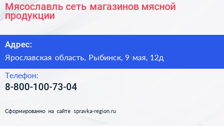 Мясославль, сеть магазинов мясной продукции по адресу Ярославская область, Рыбинск, 9 мая, 12д в дальнейшем Организация, размещена в следующих категориях: