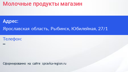 Молочные продукты, магазин по адресу Ярославская область, Рыбинск, Юбилейная, 27/1 в дальнейшем Организация, размещена в следующих категориях: