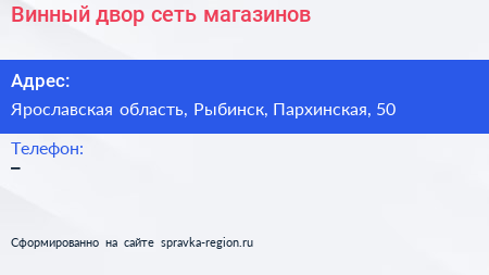 Винный двор, сеть магазинов по адресу Ярославская область, Рыбинск, Пархинская, 50 в дальнейшем Организация, размещена в следующих категориях: