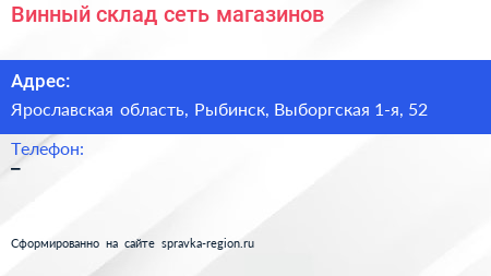 Винный склад, сеть магазинов по адресу Ярославская область, Рыбинск, Выборгская 1-я, 52 в дальнейшем Организация, размещена в следующих категориях: