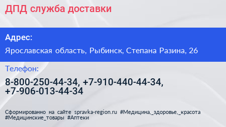 ДПД, служба доставки по адресу Ярославская область, Рыбинск, Степана Разина, 26 в дальнейшем Организация, размещена в следующих категориях: