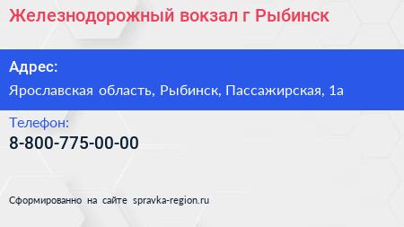 Железнодорожный вокзал, г. Рыбинск по адресу Ярославская область, Рыбинск, Пассажирская, 1а в дальнейшем Организация, размещена в следующих категориях: