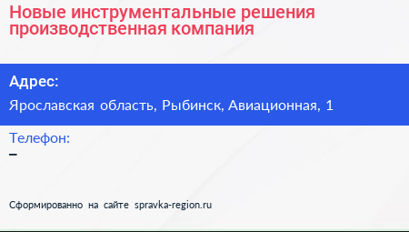 Новые инструментальные решения, производственная компания по адресу Ярославская область, Рыбинск, Авиационная, 1 в дальнейшем Организация, размещена в следующих категориях: