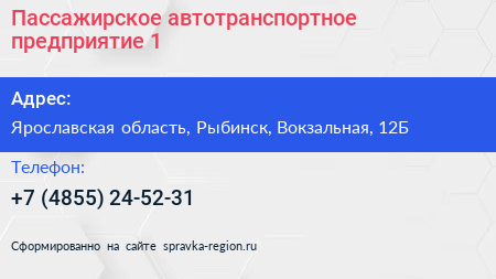 Пассажирское автотранспортное предприятие №1 по адресу Ярославская область, Рыбинск, Вокзальная, 12Б в дальнейшем Организация, размещена в следующих категориях: