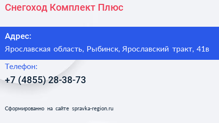 Снегоход-Комплект-Плюс по адресу Ярославская область, Рыбинск, Ярославский тракт, 41в в дальнейшем Организация, размещена в следующих категориях: