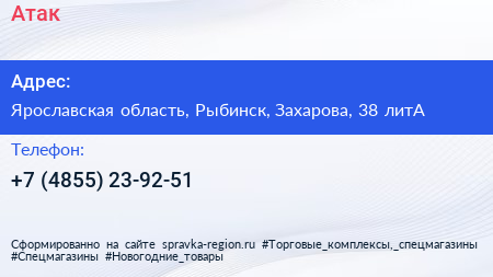 Атак по адресу Ярославская область, Рыбинск, Захарова, 38 литА в дальнейшем Организация, размещена в следующих категориях:
