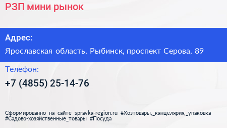 РЗП, мини-рынок по адресу Ярославская область, Рыбинск, проспект Серова, 89 в дальнейшем Организация, размещена в следующих категориях: