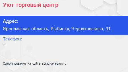 Уют, торговый центр по адресу Ярославская область, Рыбинск, Черняховского, 31 в дальнейшем Организация, размещена в следующих категориях: