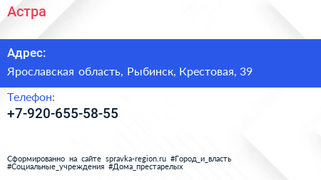 Астра по адресу Ярославская область, Рыбинск, Крестовая, 39 в дальнейшем Организация, размещена в следующих категориях: