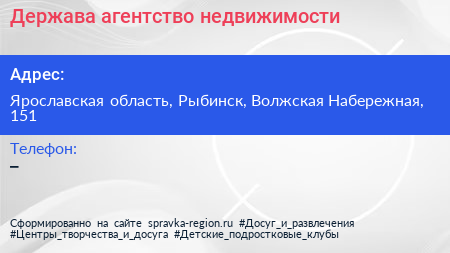 Держава, агентство недвижимости по адресу Ярославская область, Рыбинск, Волжская Набережная, 151 в дальнейшем Организация, размещена в следующих категориях:
