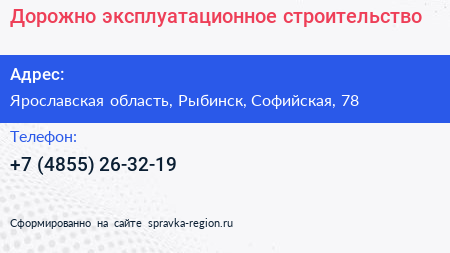 Дорожно-эксплуатационное строительство по адресу Ярославская область, Рыбинск, Софийская, 78 в дальнейшем Организация, размещена в следующих категориях: