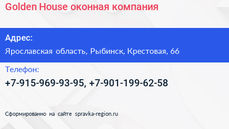 Golden House, оконная компания по адресу Ярославская область, Рыбинск, Крестовая, 66 в дальнейшем Организация, размещена в следующих категориях: