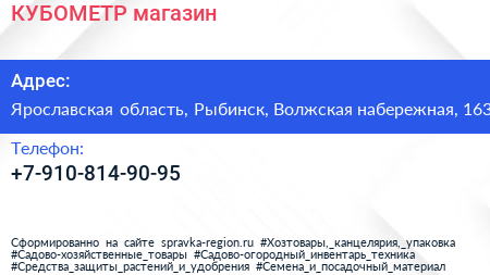 КУБОМЕТР, магазин по адресу Ярославская область, Рыбинск, Волжская набережная, 163 в дальнейшем Организация, размещена в следующих категориях: