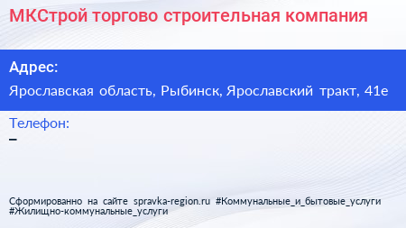 МКСтрой, торгово-строительная компания по адресу Ярославская область, Рыбинск, Ярославский тракт, 41е в дальнейшем Организация, размещена в следующих категориях: