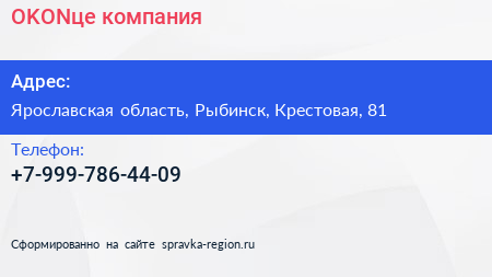 OKONце, компания по адресу Ярославская область, Рыбинск, Крестовая, 81 в дальнейшем Организация, размещена в следующих категориях:
