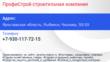 ПрофиСтрой, строительная компания по адресу Ярославская область, Рыбинск, Чкалова, 50/10 в дальнейшем Организация, размещена в следующих категориях: