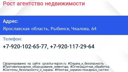 Рост, агентство недвижимости по адресу Ярославская область, Рыбинск, Чкалова, 64 в дальнейшем Организация, размещена в следующих категориях: