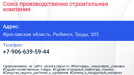 Союз, производственно-строительная компания по адресу Ярославская область, Рыбинск, Труда, 103 в дальнейшем Организация, размещена в следующих категориях: