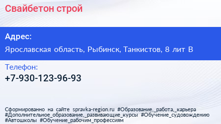 Свайбетон-строй по адресу Ярославская область, Рыбинск, Танкистов, 8 лит В в дальнейшем Организация, размещена в следующих категориях: