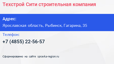 Техстрой Сити, строительная компания по адресу Ярославская область, Рыбинск, Гагарина, 35 в дальнейшем Организация, размещена в следующих категориях: